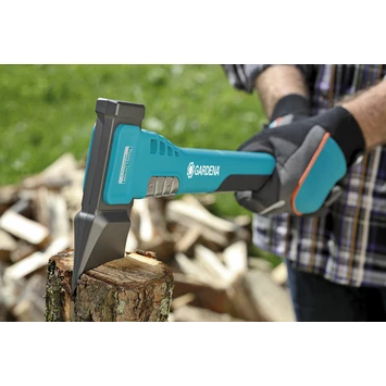 De Gardena Kloofbijl is ideaal voor het splijten van brandhout. De bijlkop heeft een speciale antikleef coating voor minder wrijving en eenvoudige penetratie in het hout. De vorm van de bijlkop is aangepast aan de toepassing, het kloven van middelgrote houtblokken. Roestvrijstalen misslagbescherming voor bescherming van de steel en een lange levensduur. Het zwaartepunt ligt dicht bij de bijlkop voor optimale balans en gewichtsverdeling en door de combinatie met de lichte steel concentreert de slagenergie zich met maximaal effect in de zware bijlkop waardoor het hout makkelijker splijt. De steel is van glasvezelversterkt polyamide (PA) en daardoor onbreekbaar, uiterst licht, stevig en duurzaam. De hamerfunctie is voor het eenvoudig inslaan van wiggen (geen stalen wiggen).